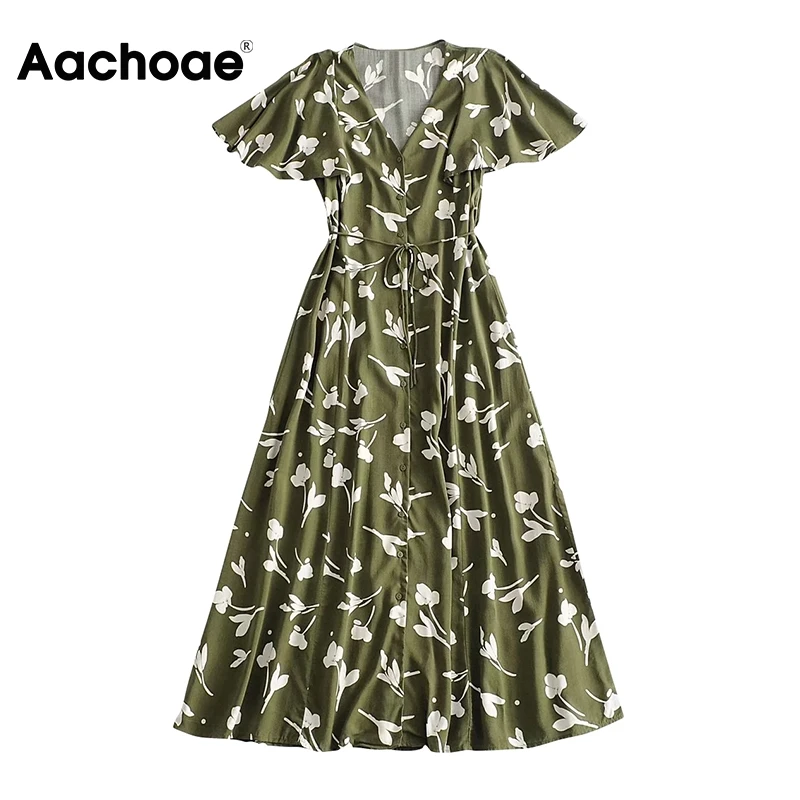 Элегантное Длинное Платье с v-образным вырезом и цветочным принтом, женские летние вечерние платья макси с коротким рукавом, бандаж на пуговицах, винтажные платья Vestido