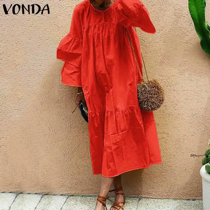Женское платье с оборками VONDA, повседневное винтажное длинное платье макси с расклешенными рукавами для вечеринки, весна-лето 2020, пляжный сарафан большого размера