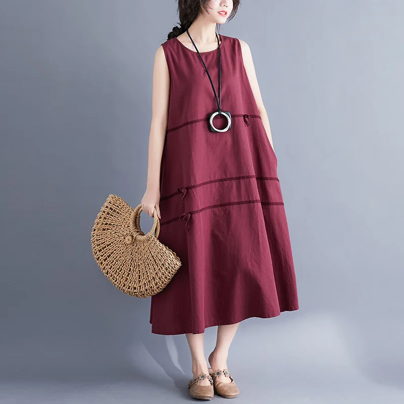 Новое льняное повседневное корейское лоскутное платье без рукавов с бантом размера плюс 4 цвета 2019 летнее женское платье простые свободные платья