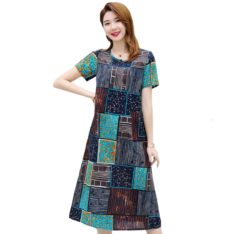 2020 новое летнее платье с принтом для женщин плюс размер 5XL с О-образным вырезом и коротким рукавом женское платье повседневное тонкое женское свободное Элегантное Длинное Платье