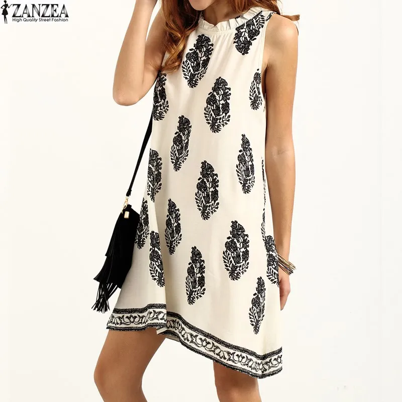 Женский сарафан с цветочным принтом ZANZEA, Пляжное мини-платье без рукавов в стиле ретро, лето 2020