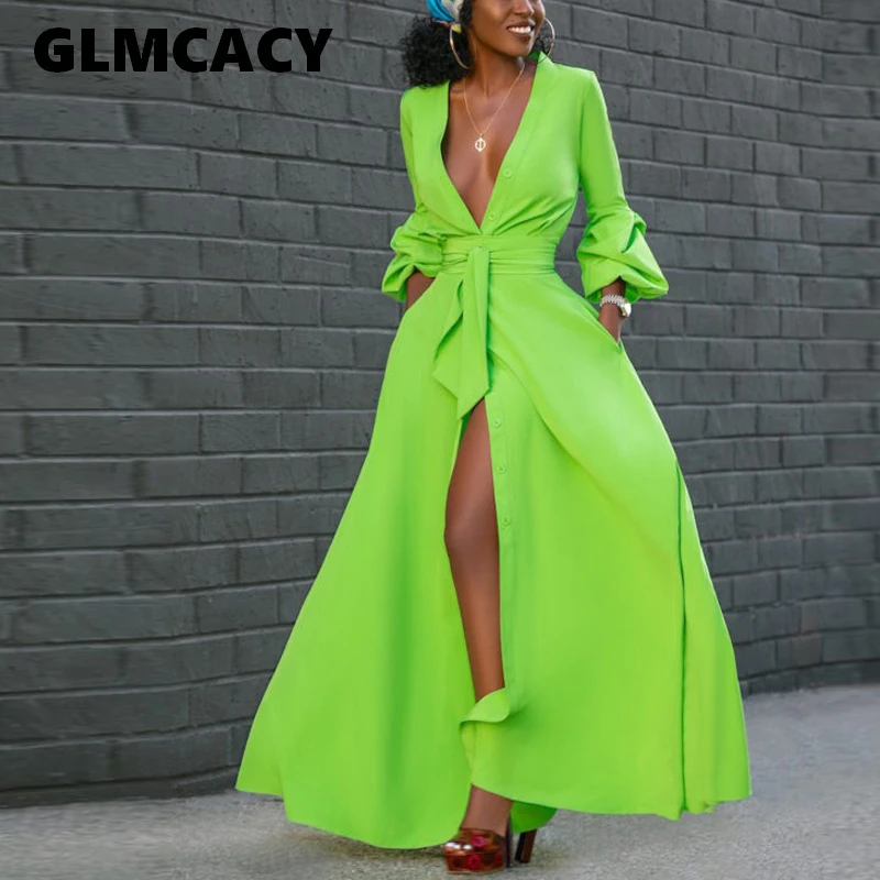 Женское однотонное платье-рубашка с длинным рукавом и v-образным вырезом, стильное современное офисное женское платье, рабочая одежда, секс...