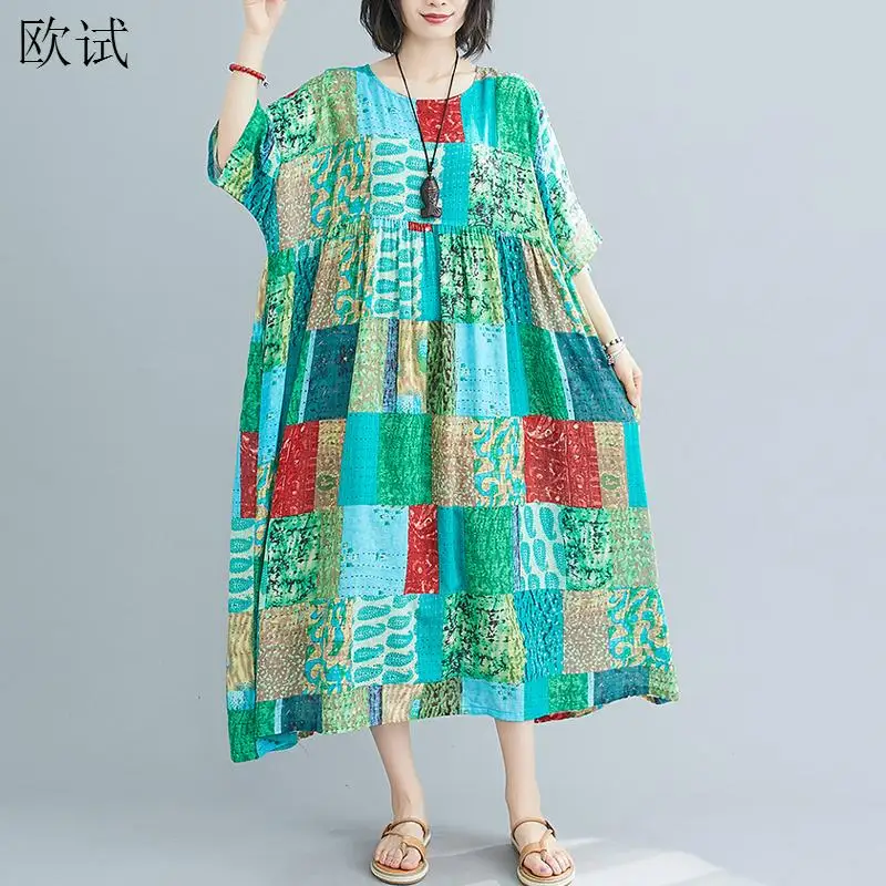 Женское пляжное платье в стиле бохо, повседневное длинное платье большого размера с цветочным принтом, 4XL, 5XL, 6XL, 2020