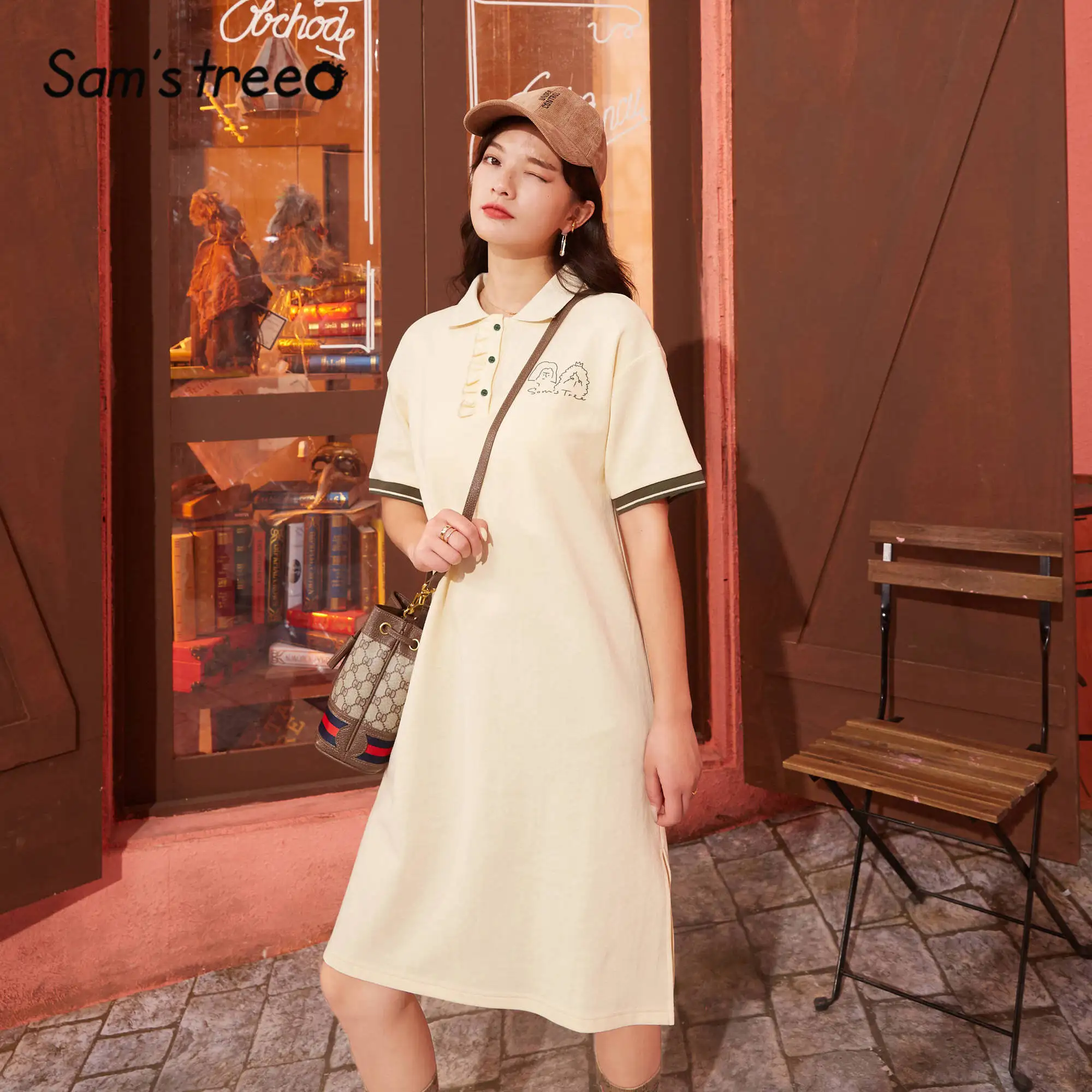 Женское Повседневное платье SAM'S TREE, бежевое однотонное платье с графическим принтом, весна 2020