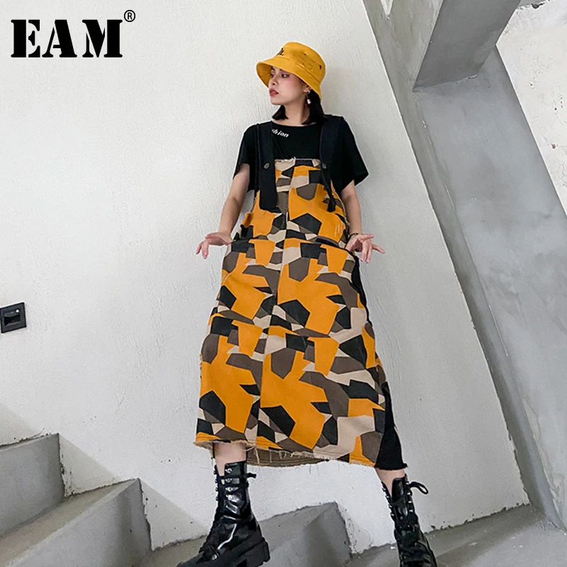 Женское платье без бретелек EAM, весенне-осеннее платье из джинсовой ткани с принтом, 1T161