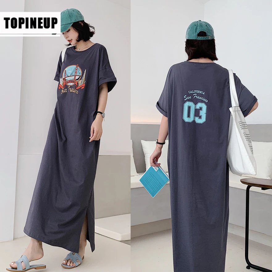 Женское повседневное Свободное длинное платье макси с коротким рукавом и буквенным принтом размера плюс, сарафан с круглым вырезом для женщин размера плюс, длинные платья