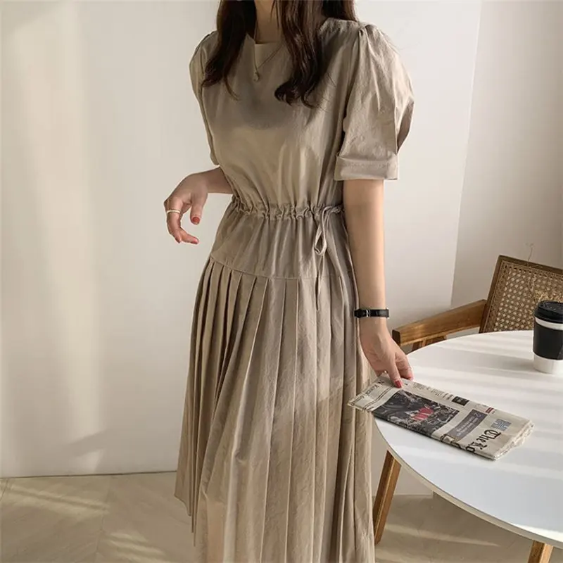 Женское летнее платье HziriP, однотонное милое платье со шнуровкой, короткое приталенное платье средней длины в стиле ретро, модель 2020
