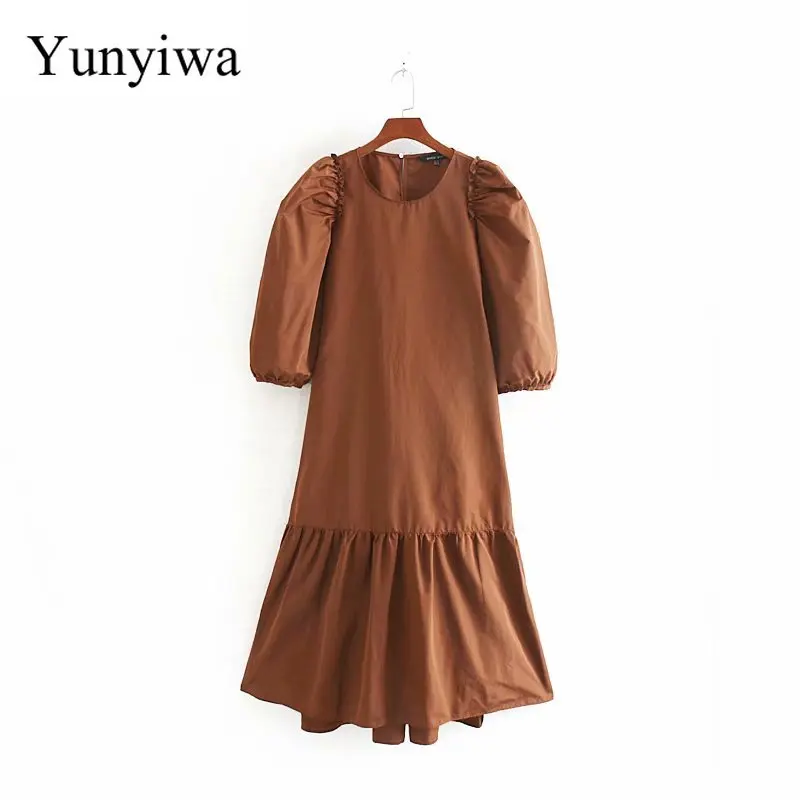 Women Vintage O Neck Solid Color Hem Ruffles Casual Loose Dress Elegant Lady Agaric Lace Pleats Chic Autumn Party Dresses