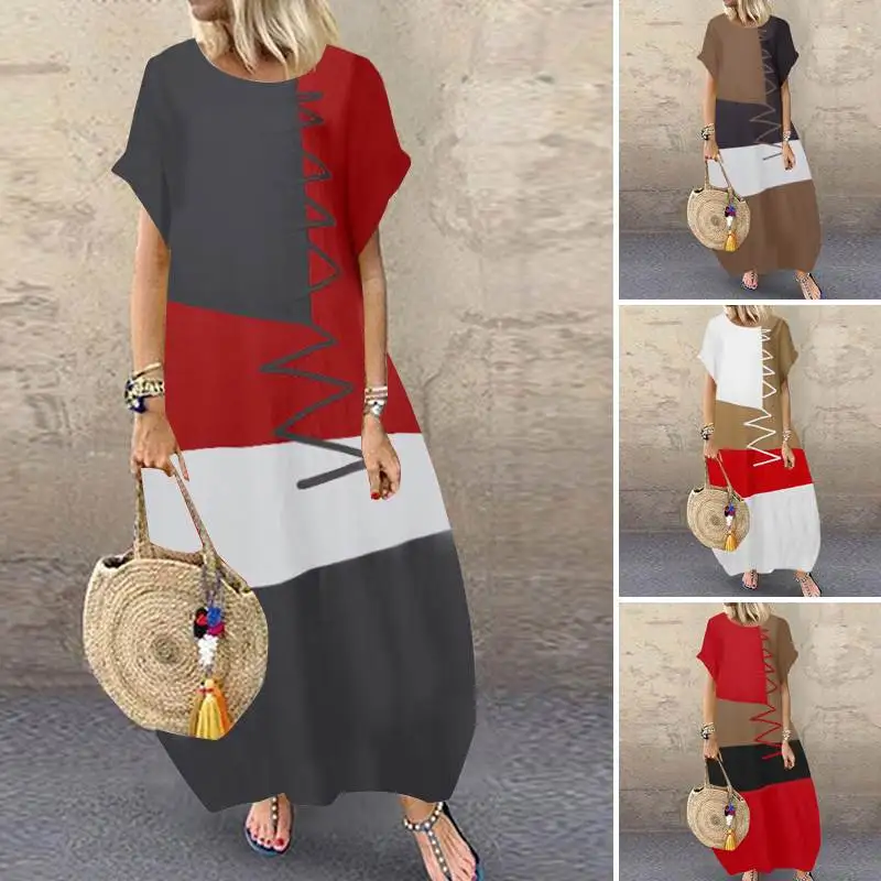 Женский летний мешковатый сарафан ZANZEA, Повседневный хлопковый льняной Макси-сарафан в стиле пэчворк размера плюс с коротким рукавом, 2020