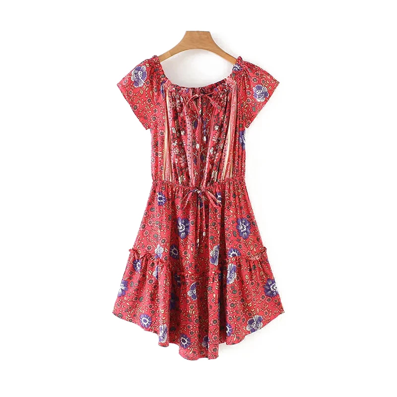 Цветочный принт Для женщин хлопковое платье 2019 летнее пляжное платье в богемном стиле шикарные дамы Высокая Талия Сексуальные Платья вечер...