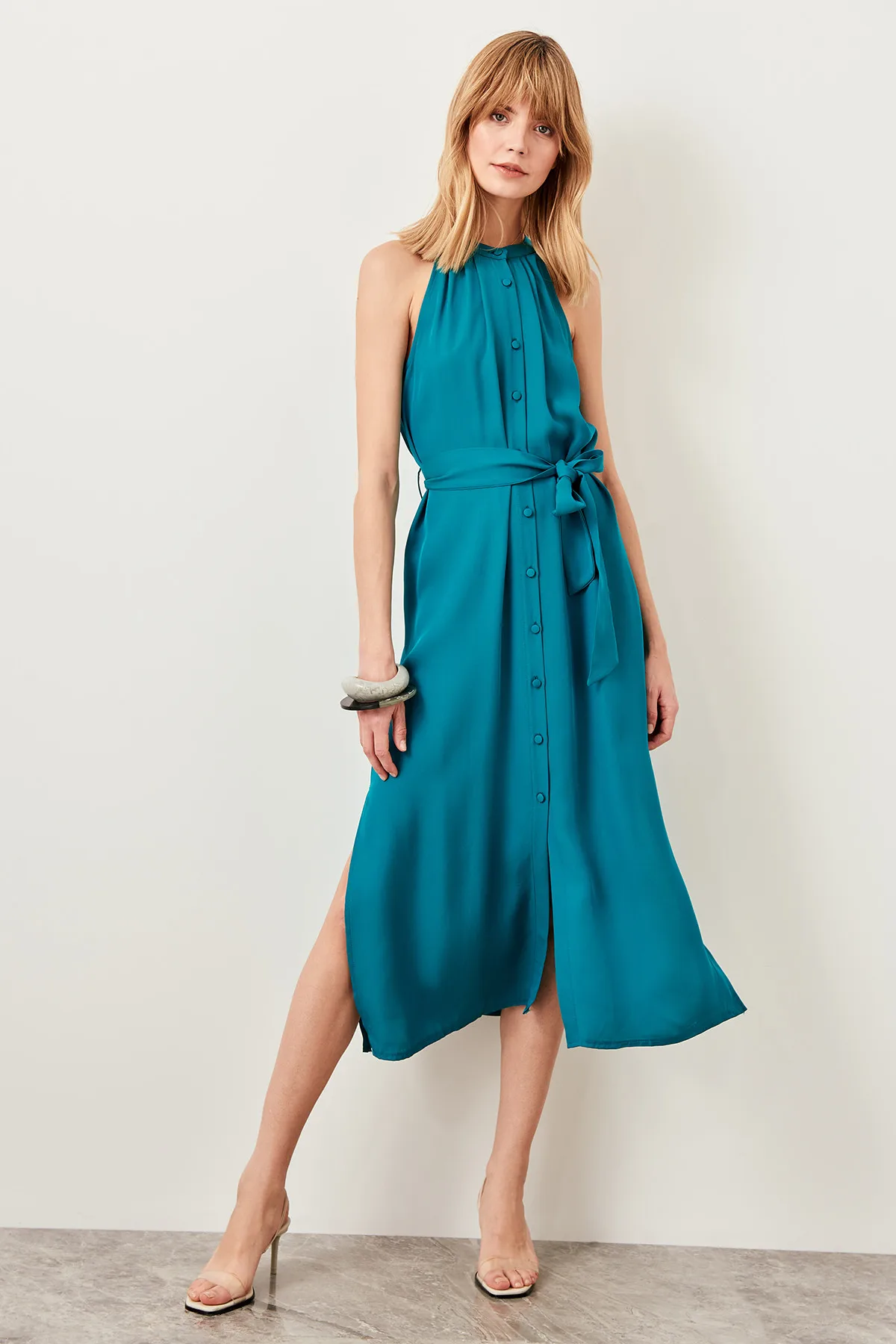 Trendyol Advanced Linking изумрудно-зеленое платье TWOSS19XM0112