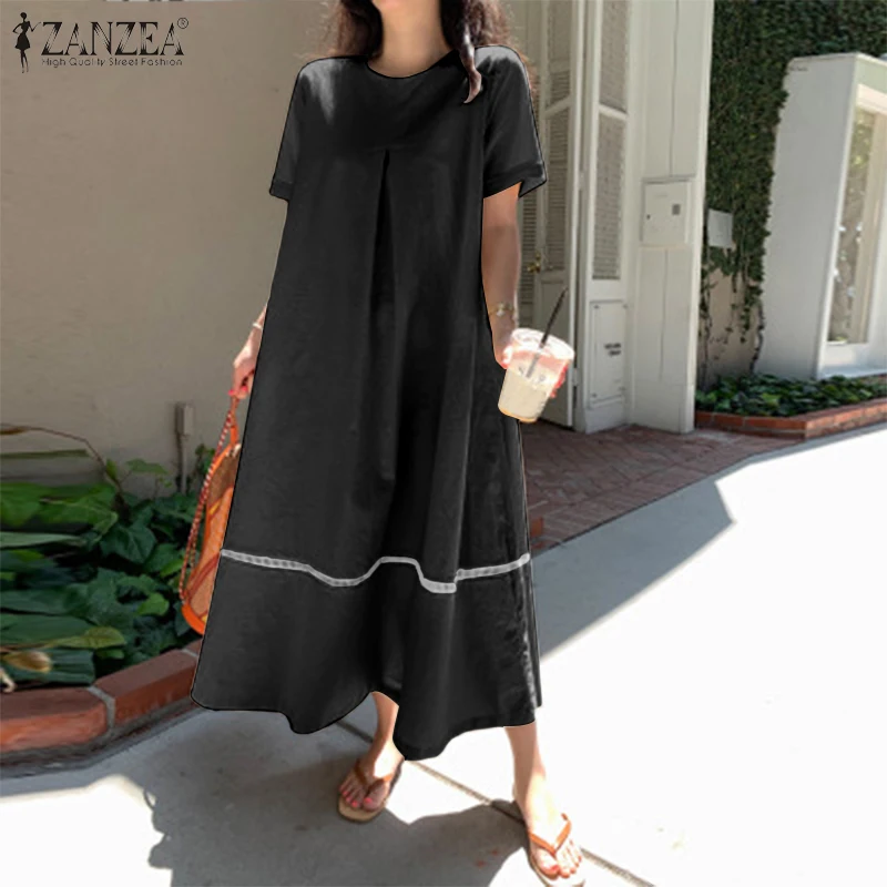 Женское богемное длинное платье макси ZANZEA размера плюс, Женский однотонный летний сарафан, женские пляжные вечерние мешковатые платья с карманами, Robe Femme