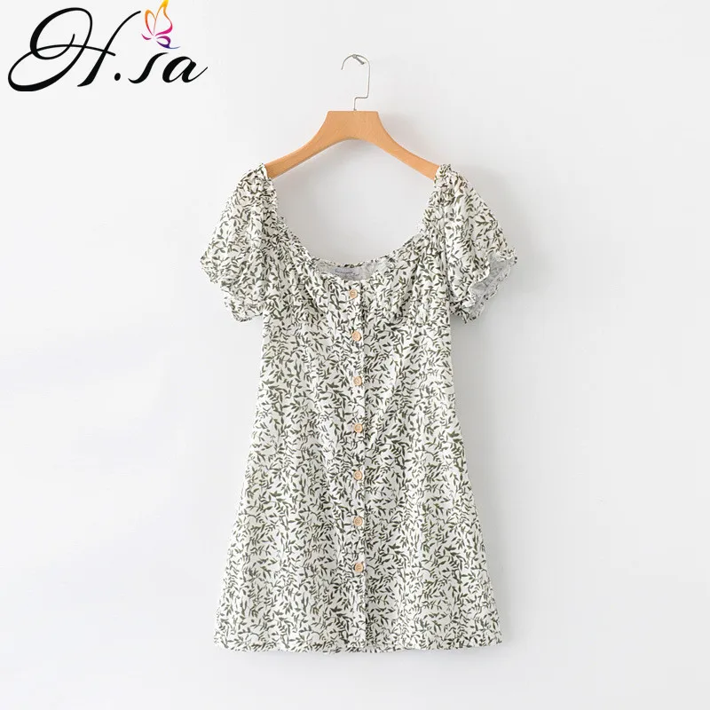 H. SA женское платье, винтажное Цветочное платье, с высокой талией, на пуговицах, до колена, повседневное платье, ТРАПЕЦИЕВИДНОЕ, пляжный стиль, с листьями, женское платье