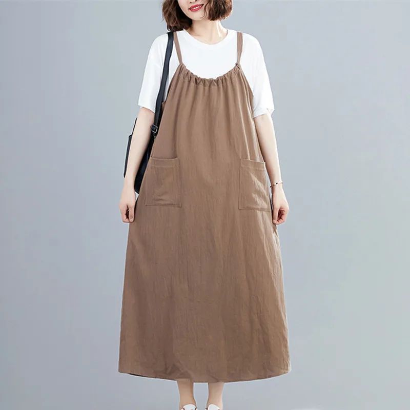 Женское платье на бретельках Uego, повседневное свободное платье из хлопка и льна без рукавов с бантом и карманом в Корейском стиле на лето