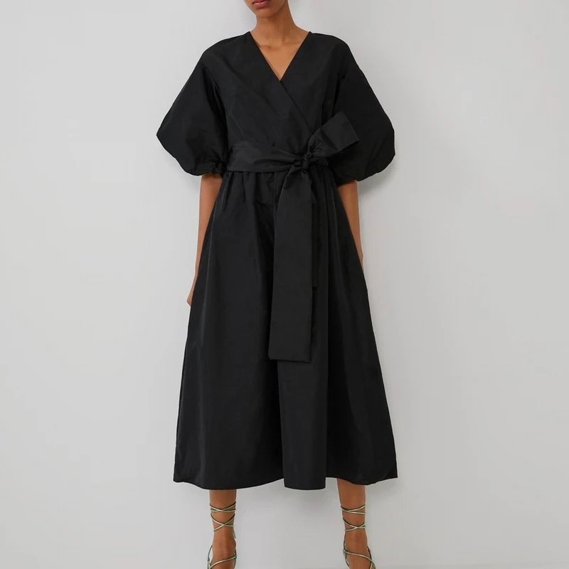 Стильное женское черное платье Весна 2020 Новая мода водонепроницаемый материал пояса современные женские длинные платья