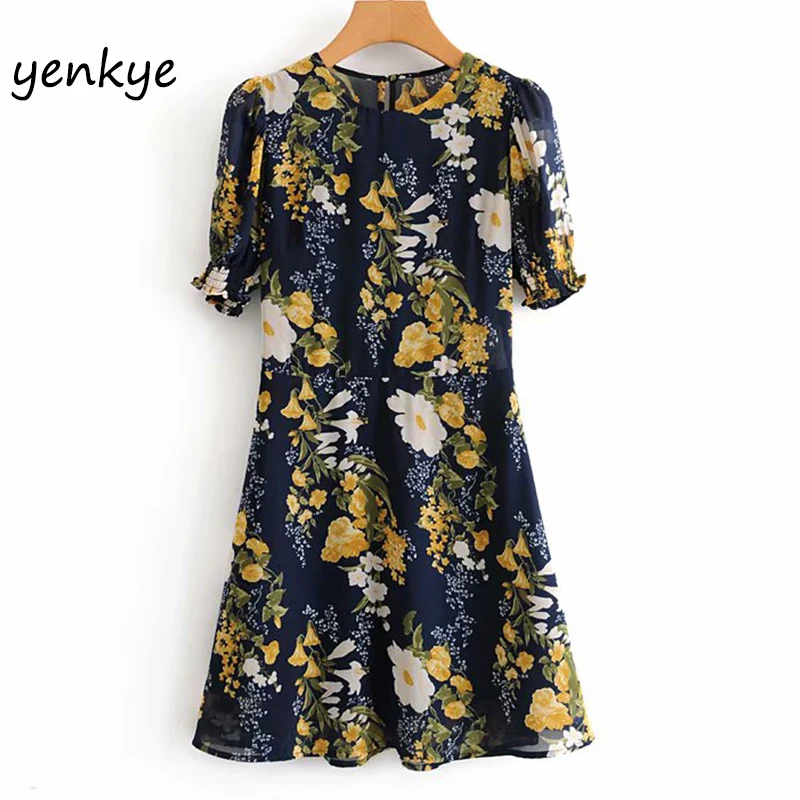 Праздничное летнее платье 2020 женское винтажное шифоновое платье с цветочным принтом женское мини-платье трапециевидной формы с круглым вырезом и коротким рукавом DDOM0004