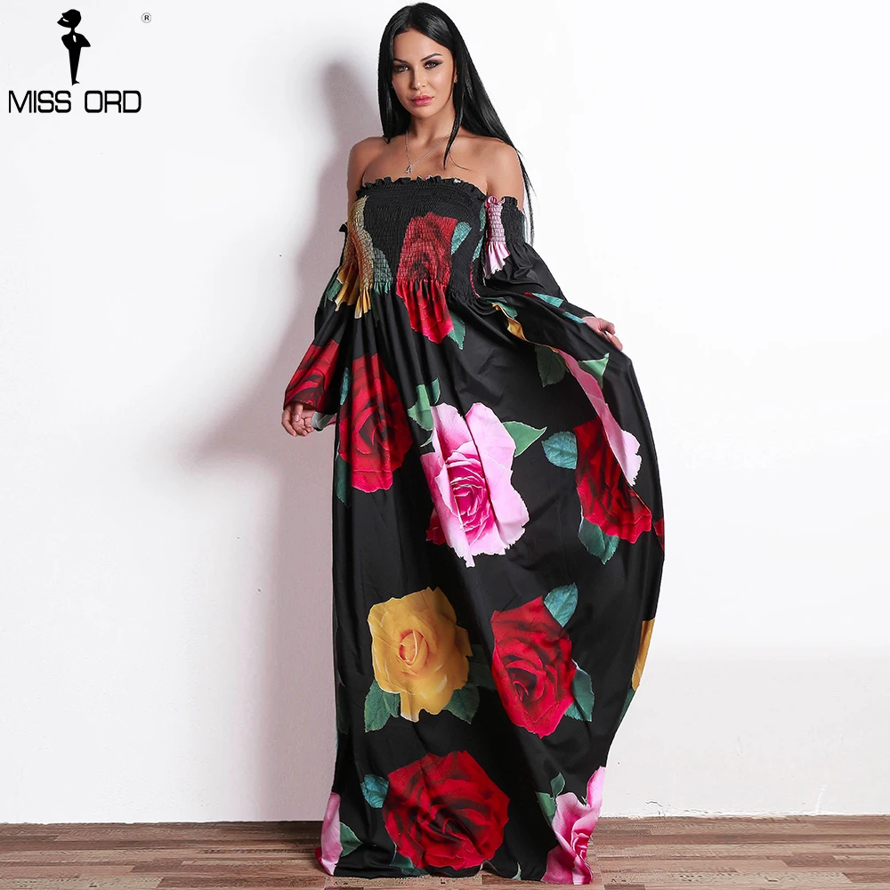 Missord 2019 женское сексуальное цельное платье с цветочным принтом с открытыми плечами с открытой спиной с длинным рукавом элегантное платье ...