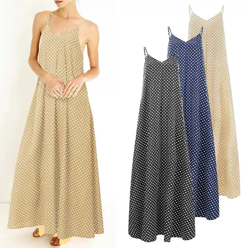Женский сарафан с принтом ZANZEA, Элегантное летнее платье в горошек, на тонких бретелях, макси, Vestido, женское Повседневное платье с v-образным вырезом, большие размеры