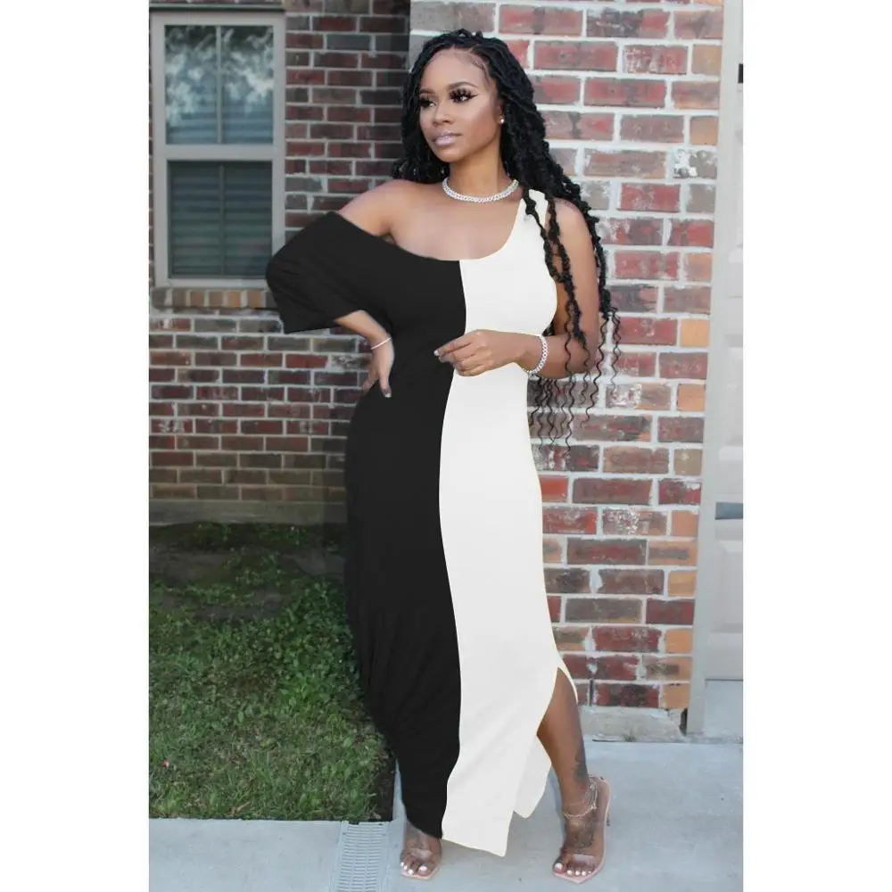 Wjustforu женское хлопковое повседневное контрастное асимметричное платье, летнее модное сексуальное двухцветное платье с высокой талией, наклонное длинное платье