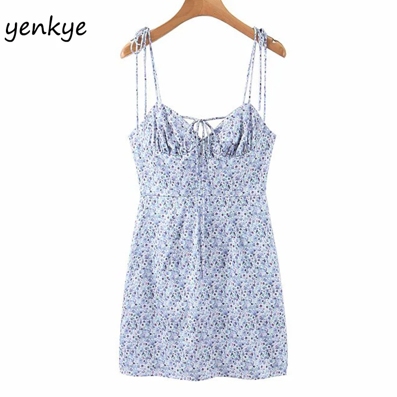 Романтичное сексуальное платье на тонких бретельках, женское милое платье с цветочным принтом, женское атласное шифоновое Летнее мини-платье без рукавов с открытой спиной
