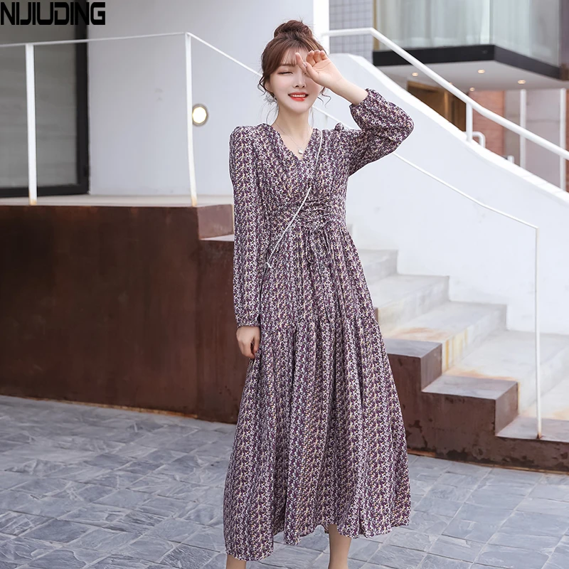 Женское платье NIJIUDING, шифоновое платье с длинным рукавом и треугольным вырезом, на весну-осень 2020