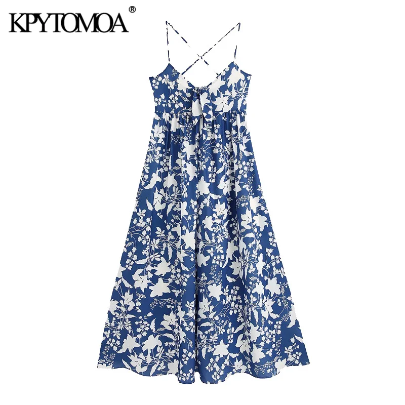 Женское платье миди KPYTOMOA, винтажное платье с цветочным принтом и открытой спиной на тонких бретельках, модель 2020