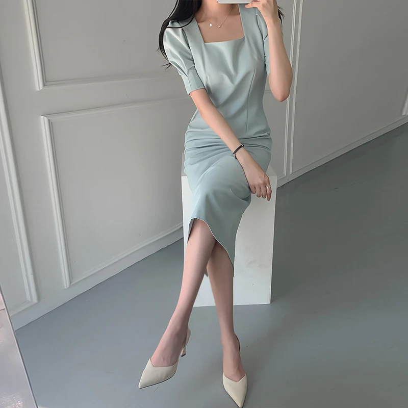 Женское винтажное элегантное платье средней длины с v-образным вырезом, Модное пышное платье с короткими рукавами и пуговицами 2020, женские офисные повседневные платья с поясом