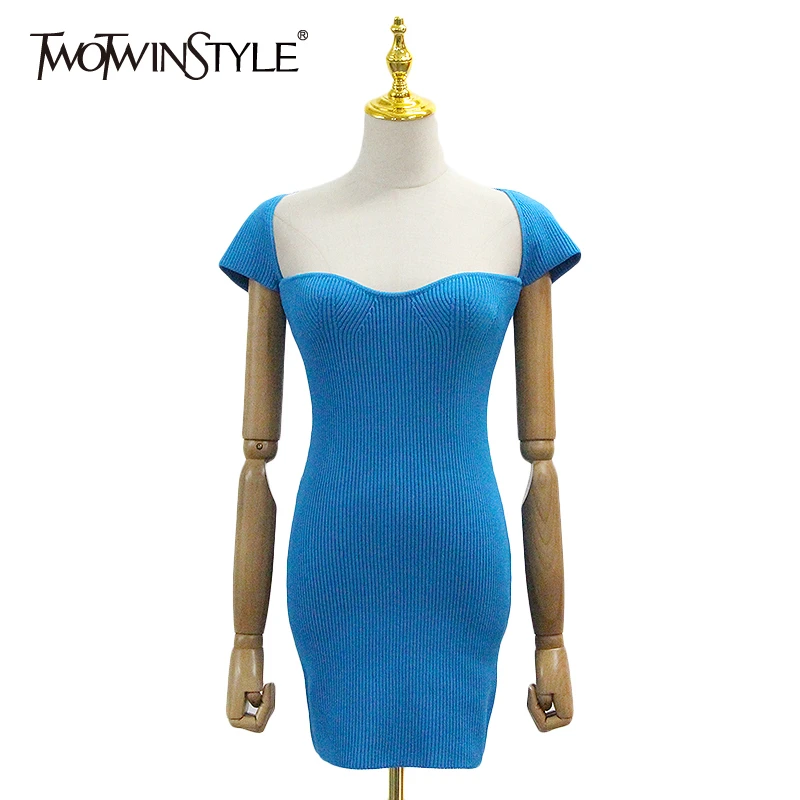 Платье-туника TWOTWINSTYLE, мини-платье с коротким рукавом и квадратным воротником, высокой талией