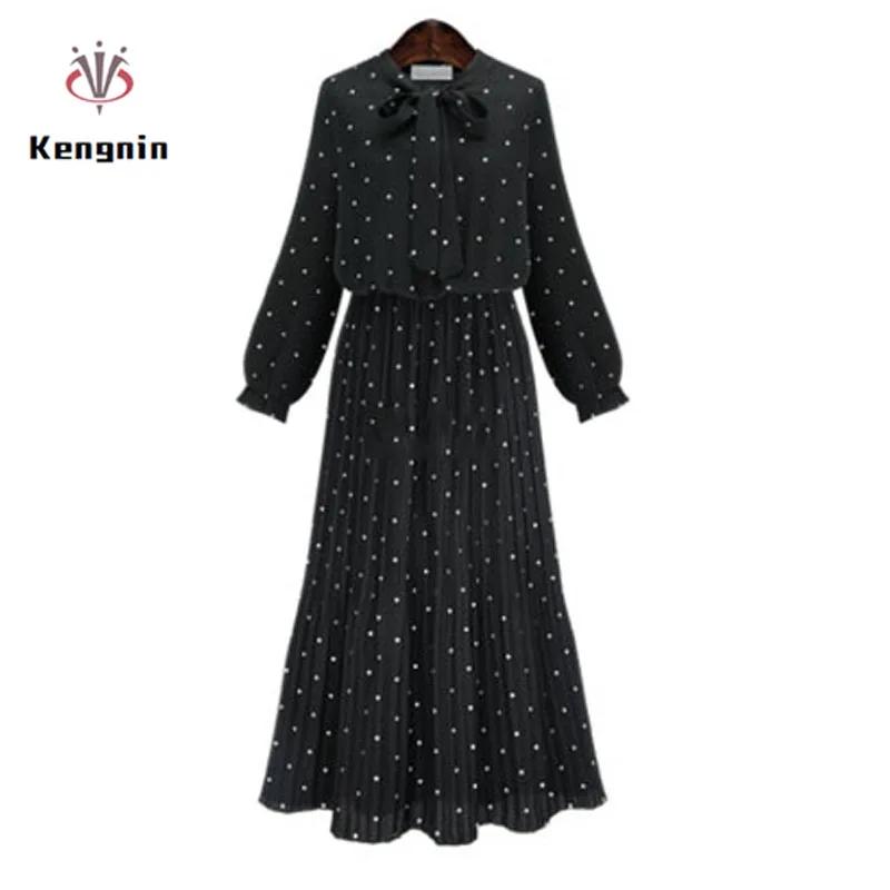 Женское Плиссированное Платье, Элегантное Длинное Платье-рубашка для женщин, офисное платье с длинным рукавом, шифоновое женское длинное платье с длинным рукавом