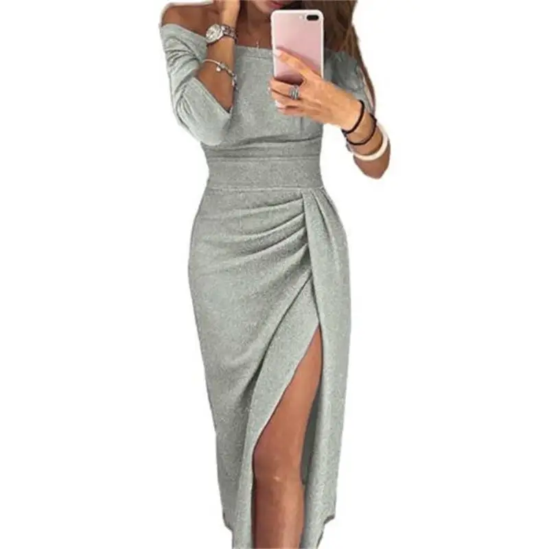 Весенне-осенвечерние платье с асимметричным разрезом, сексуальное платье посылка, элегантное облегающее платье миди, зимнее женское плать...