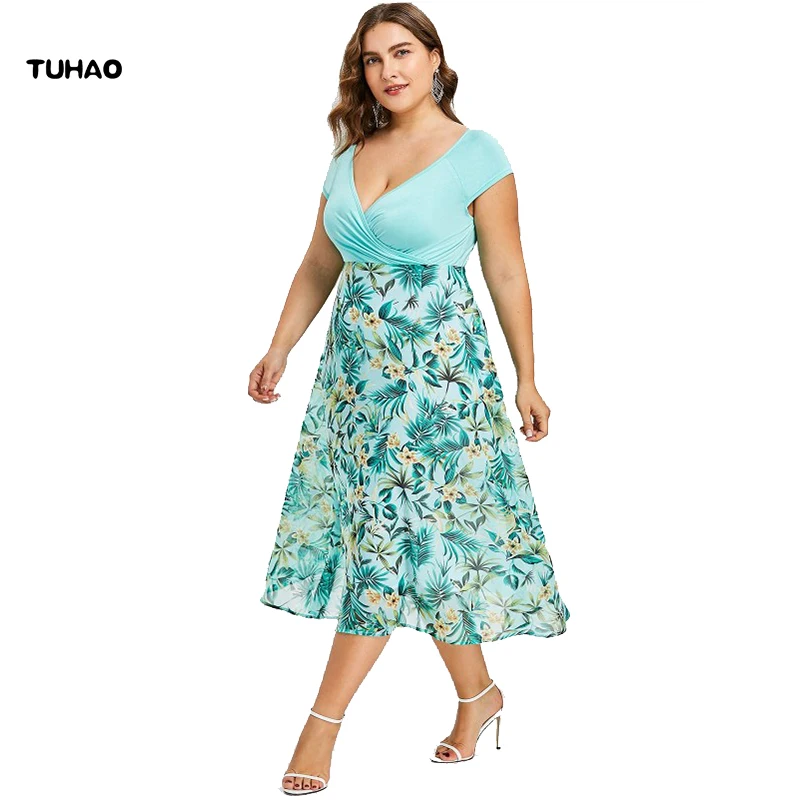 TUHAO 5XL 4XL 3XL плюс Размеры Женская богемное пляжное платье платья с принтом в стиле пэчворк Женское платье Повседневное свободные секс женская...