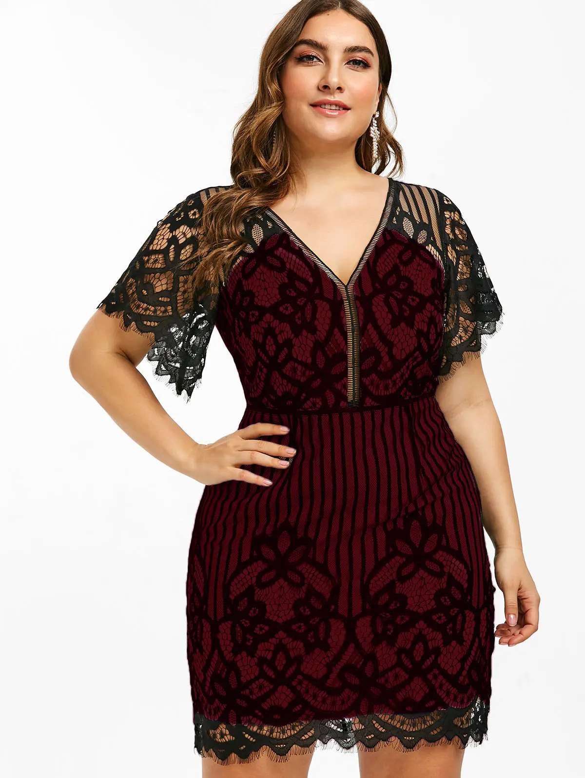 Wipalo плюс Размеры кружевные бюстгальтеры с глубоким вырезом летние Рубашка с короткими рукавами с треугольным вырезом, Высокая талия в поло...