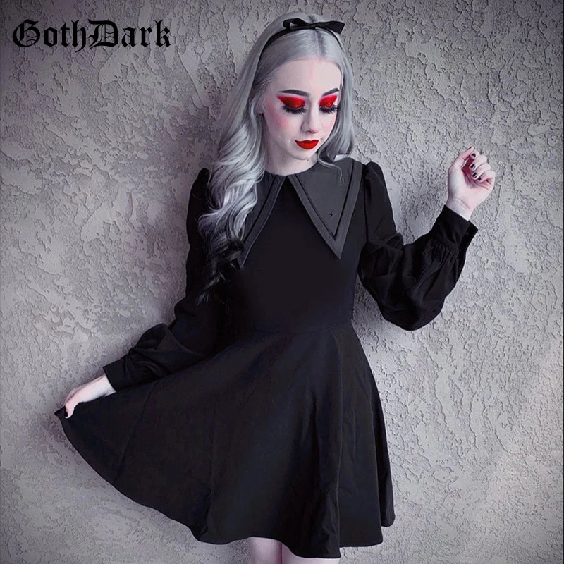 Гот темно 90s Винтаж в готическом стиле, платье в складку с длинным рукавом зимняя 2019 гранж-панк в стиле «хип-хоп» эстетическое Egirl платья эмо, ...