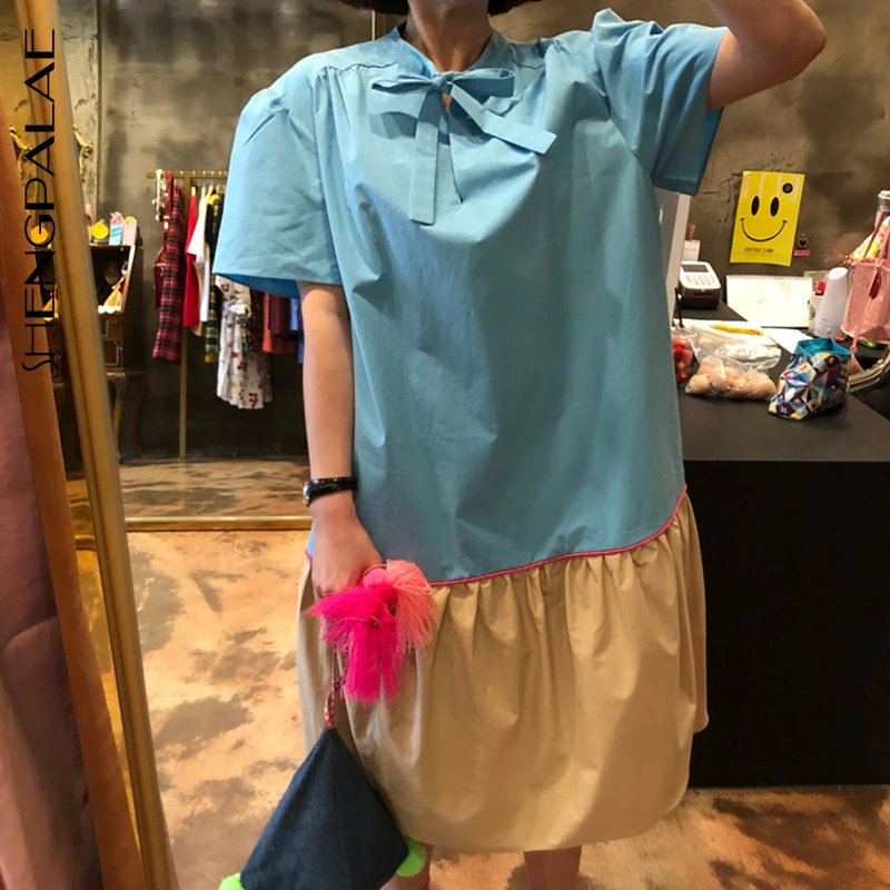 SHENGPALAE 2020 новое летнее женское винтажное свободное приталенное платье с высокой талией, элегантное платье макси с пышными рукавами, хит продаж, ZA3660