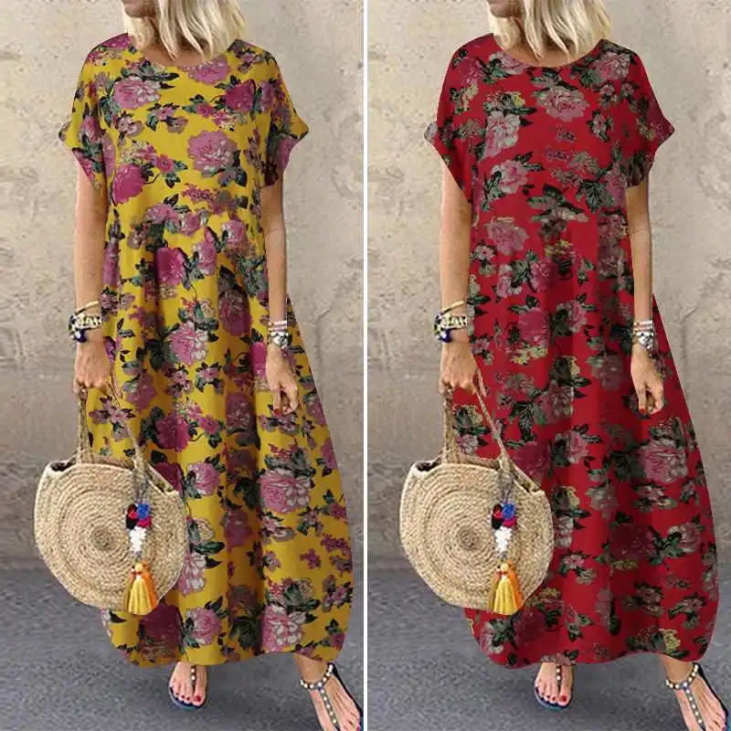 Женский сарафан с принтом ZANZEA 2020 богемное летнее макси платье Повседневная Туника с коротким рукавом Vestidos женский цветочный халат размера плюс 7