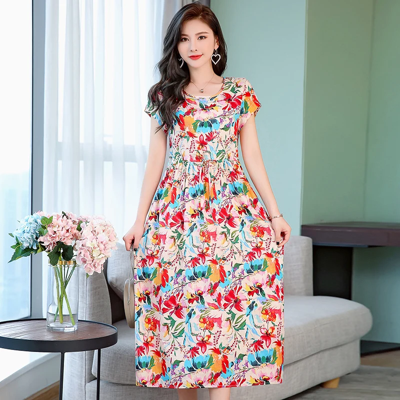 2020 женское винтажное летнее платье трапециевидной формы, Элегантное летнее платье с коротким рукавом и круглым вырезом, новое модное женское платье
