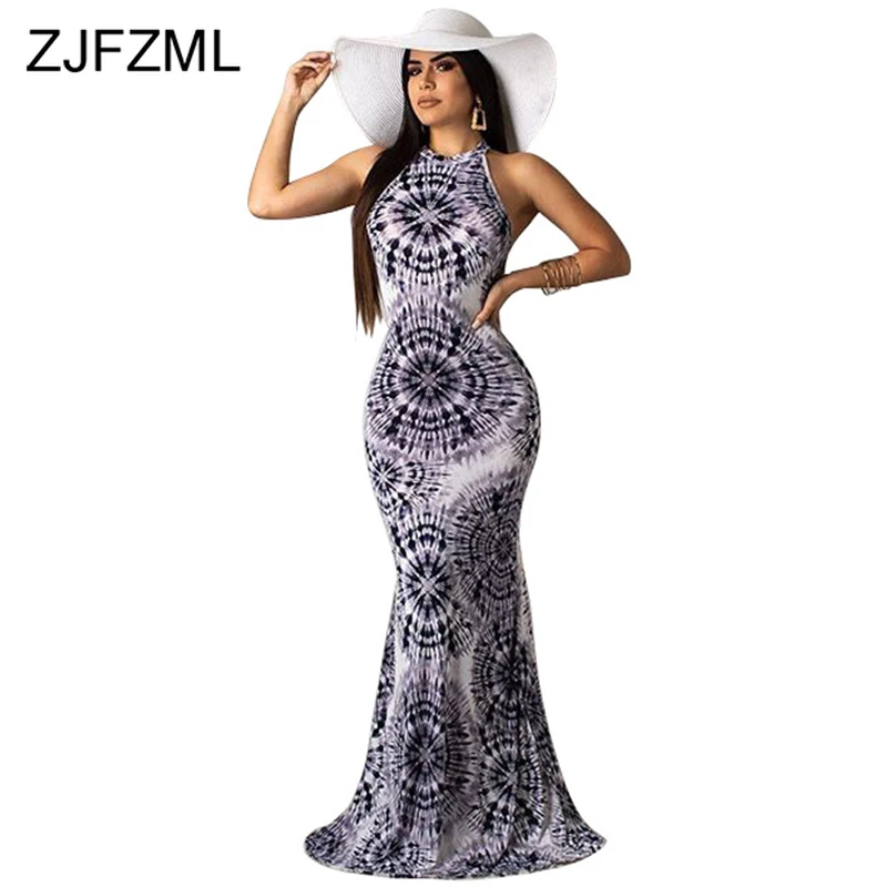 Яркое лето богемные Длинные платья Для женщин с открытыми плечами в стиле Русалочки без спины пляжное платье Лето o-образным вырезом без рук...