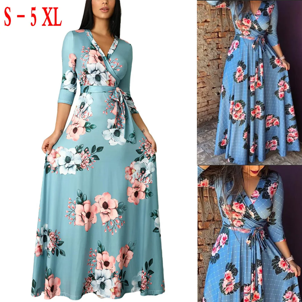 Sexy v-образным вырезом плюс размер высокой талией женские повседневные свободные длинные летние пляжные праздничное платье платья 2019 платья...