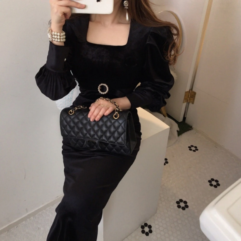 Платье с поясом в стиле ретро, весенне-летнее платье из вельвета в Корейском стиле