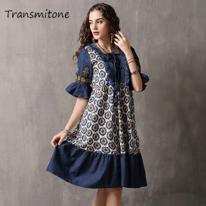 Лоскутное летнее платье с кисточками 2019 Винтаж Boho Vestidos цветочный принт трапециевидной формы без рукавов Свинг подол слоистых жен