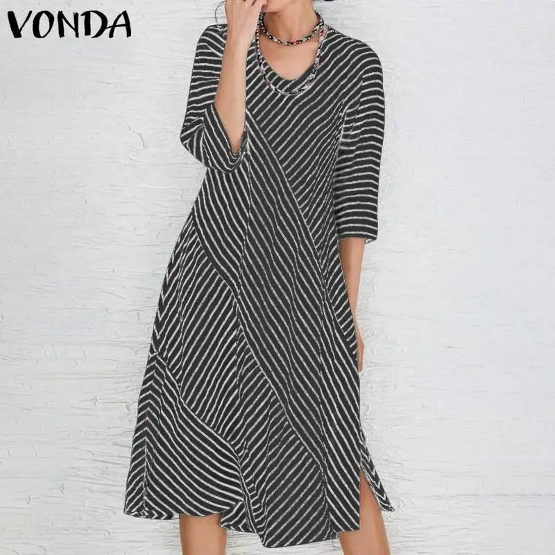 VONDA, женское платье, Femme, 2019, платья для вечеринок, хлопок, с разрезом, по колено, платье, богемное, Vestidos, размера плюс, модное, Осеннее, сарафан