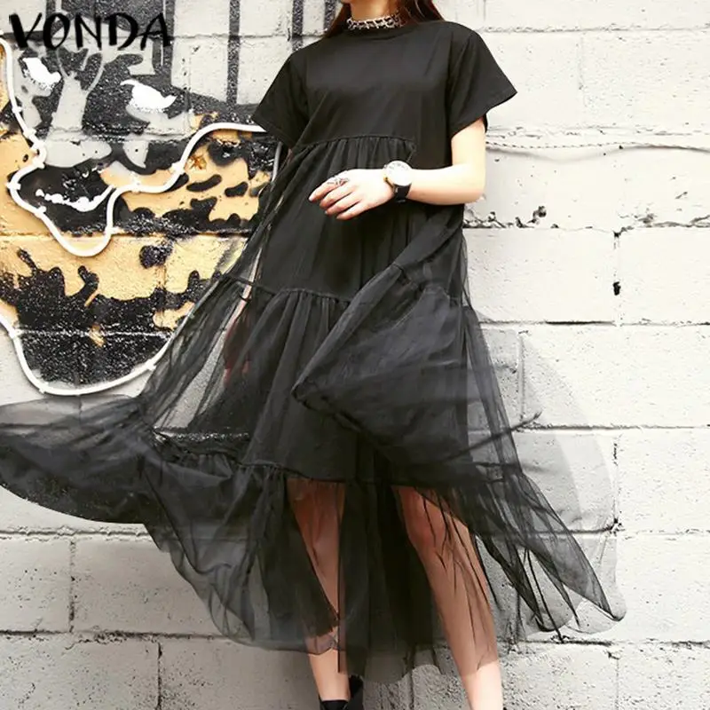 VONDA сексуальное кружевное платье женское богемное пляжное летнее праздничное платье Vestidos 2019 женское размера плюс вечерние Макси длинное пл...