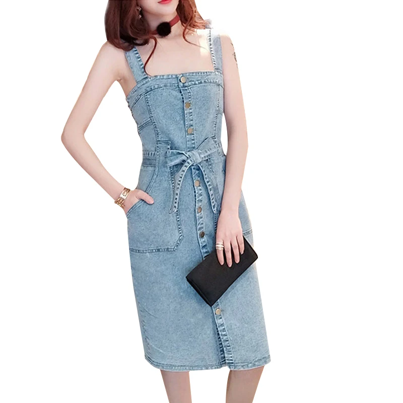 NORMOV 2019 Новое Бандажное женское платье с бантом модное платье с квадратным воротником с карманами длиной до колен Синее джинсовое платье на ...