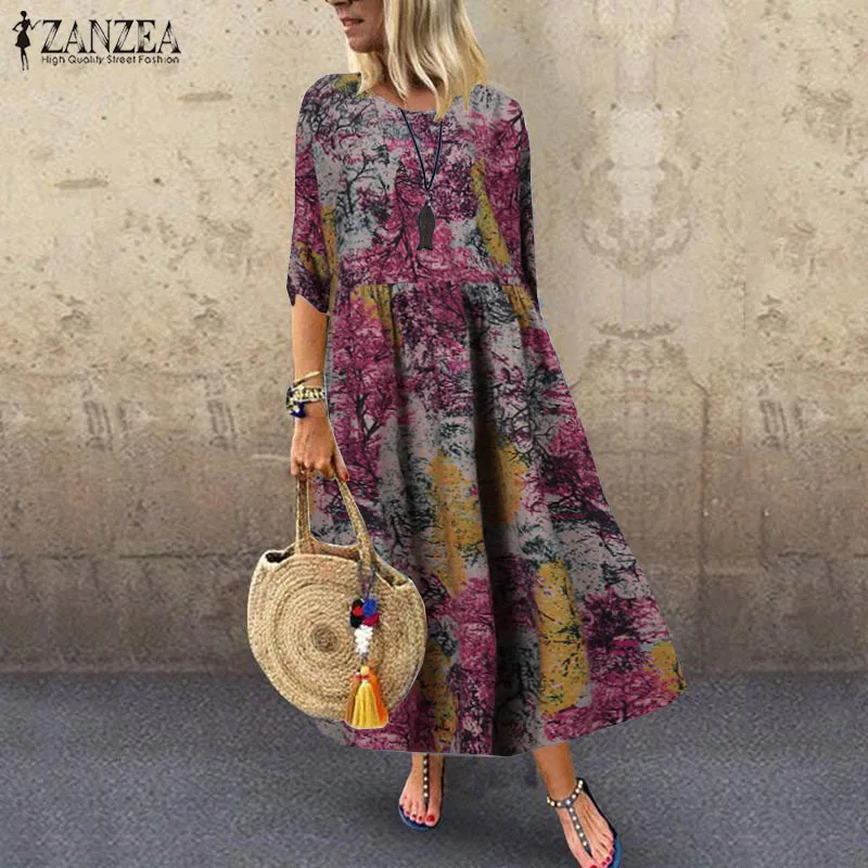 2019 женское платье ZANZEA Винтаж Цветочный Принт Сарафан Дамы сексуальный длинный макси платья для женщин Vestidos элегантный V средства ухода за к...
