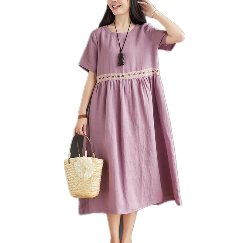 Женское свободное платье с коротким рукавом Uego, повседневное пляжное платье из хлопка и льна с вышивкой, винтажное платье большого размера