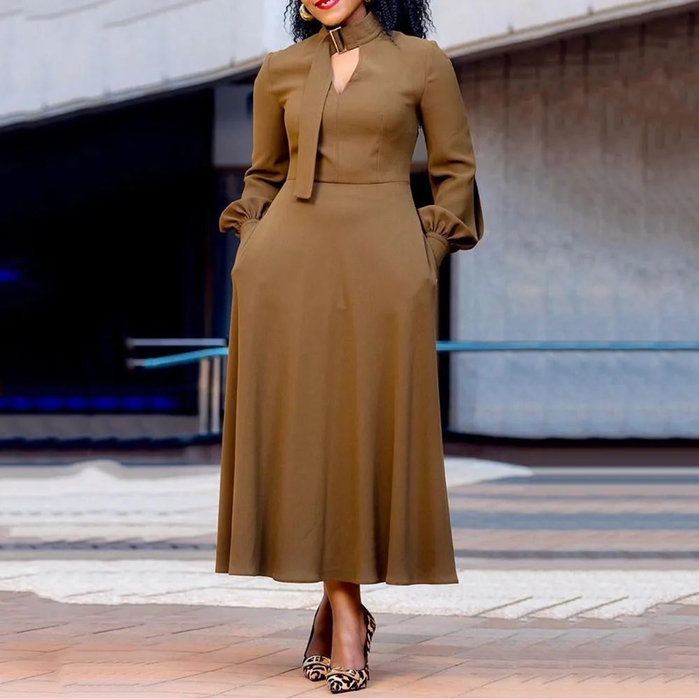 Элегантные женские платья трапециевидной формы в африканском стиле, офисные женские платья с воротником-стойкой и рукавами-фонариками, жен...
