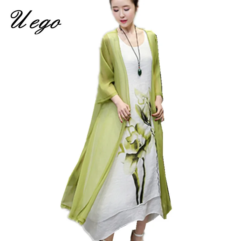Uego 2020 Новое модное весенне-летнее платье из хлопка и льна, комплект из двух предметов, платье, костюмы с принтом лотоса, свободные женские повседневные миди вечерние платья