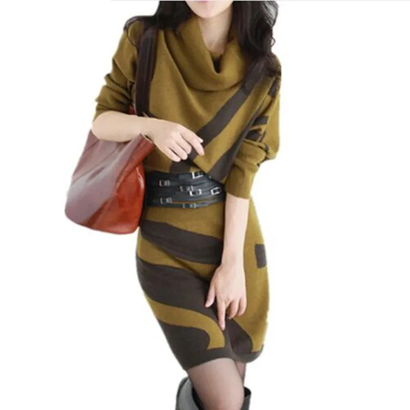 Женская Повседневная водолазка длинный трикотажный свитер платье женское хлопковое облегающее мини платье пуловер женское осенне-зимнее ...
