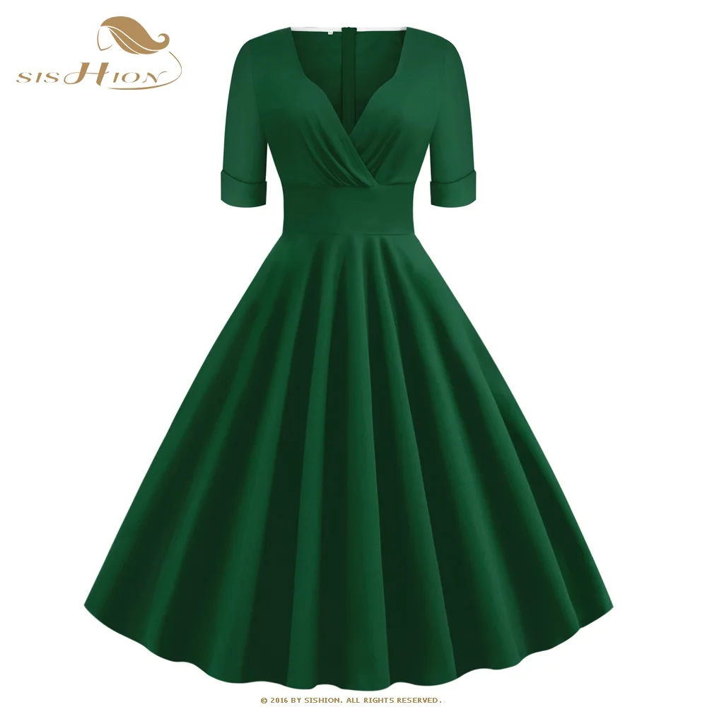 SISHION 50s 60s ретро винтажное платье VD1261 женское с коротким рукавом и v-образным вырезом элегантное Хлопковое платье в стиле рокабилли женская э...