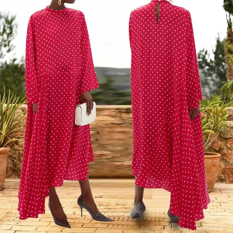 Женское богемное длинное платье-рубашка с оборками, 2019, Осенние асимметричные вечерние платья в горошек, макси платья, женское платье разме...